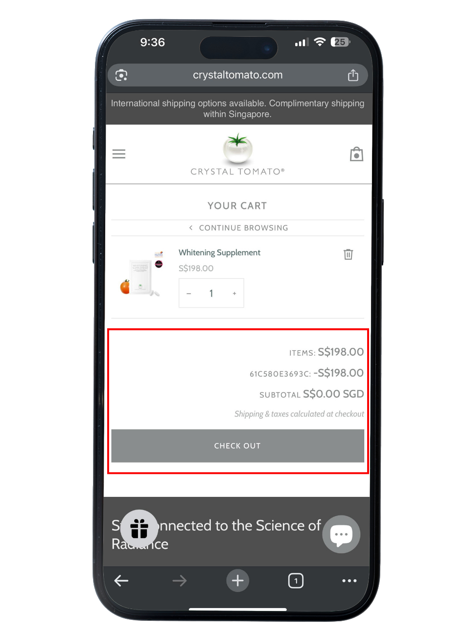 You earn Crystal Points for every Singapore dollar spent on crystaltomato.com ($1 = 10 Crystal Points). Additional points may be earned through referrals, promotions or special campaigns.