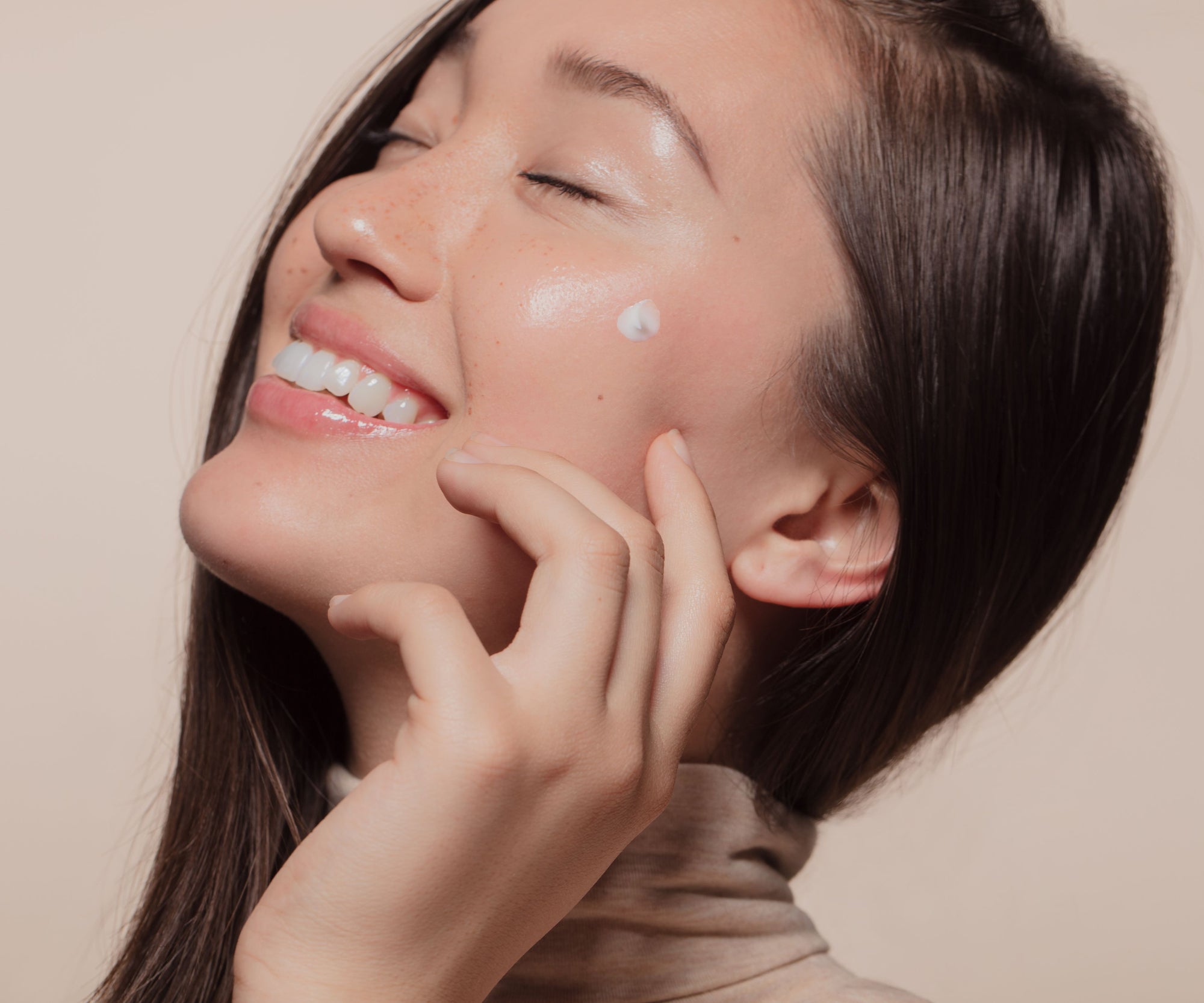 • Start with a clean face using a gentle or brightening cleanser to remove dirt and impurities. Pat your skin dry.